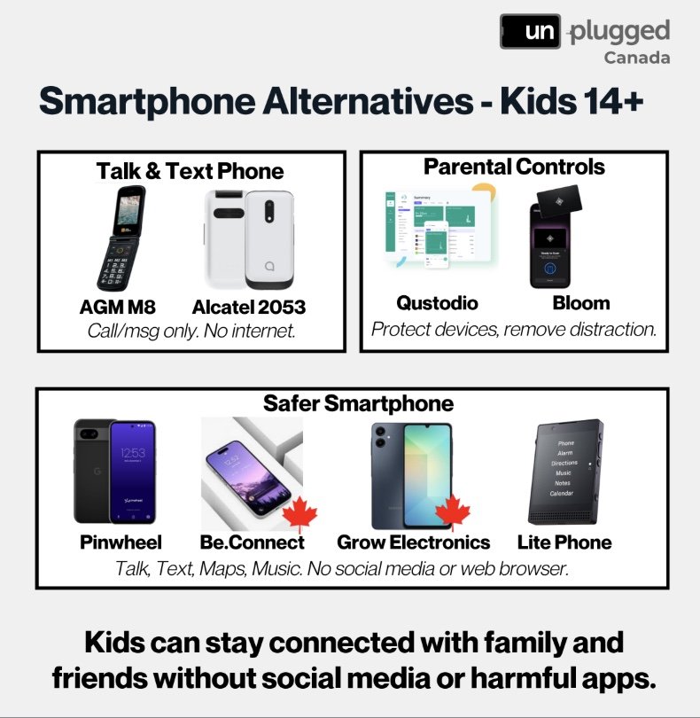 I attended a recent presentation by Unplugged Canada (Nova Scotia chapter), they shared many resources, including, The Family Smartphone Guide and smartphone alternatives found below.